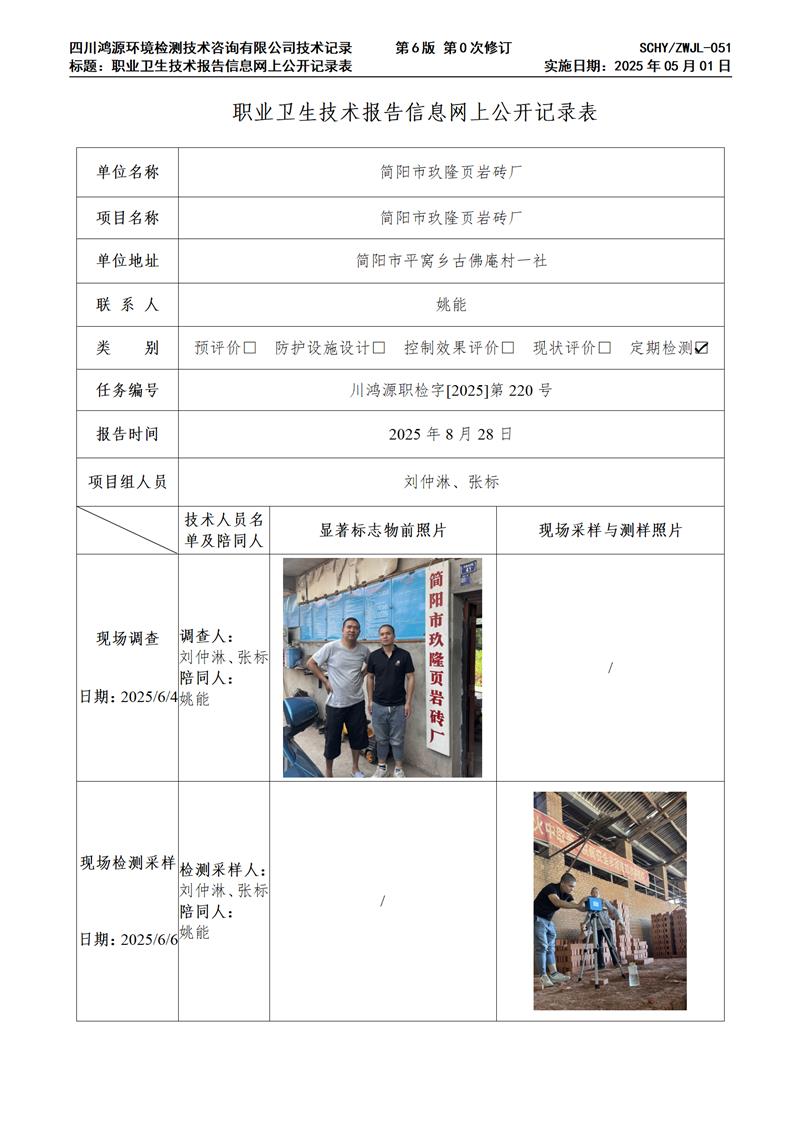 简阳市玖隆页岩砖厂职业卫生技术服务项目网上公示单