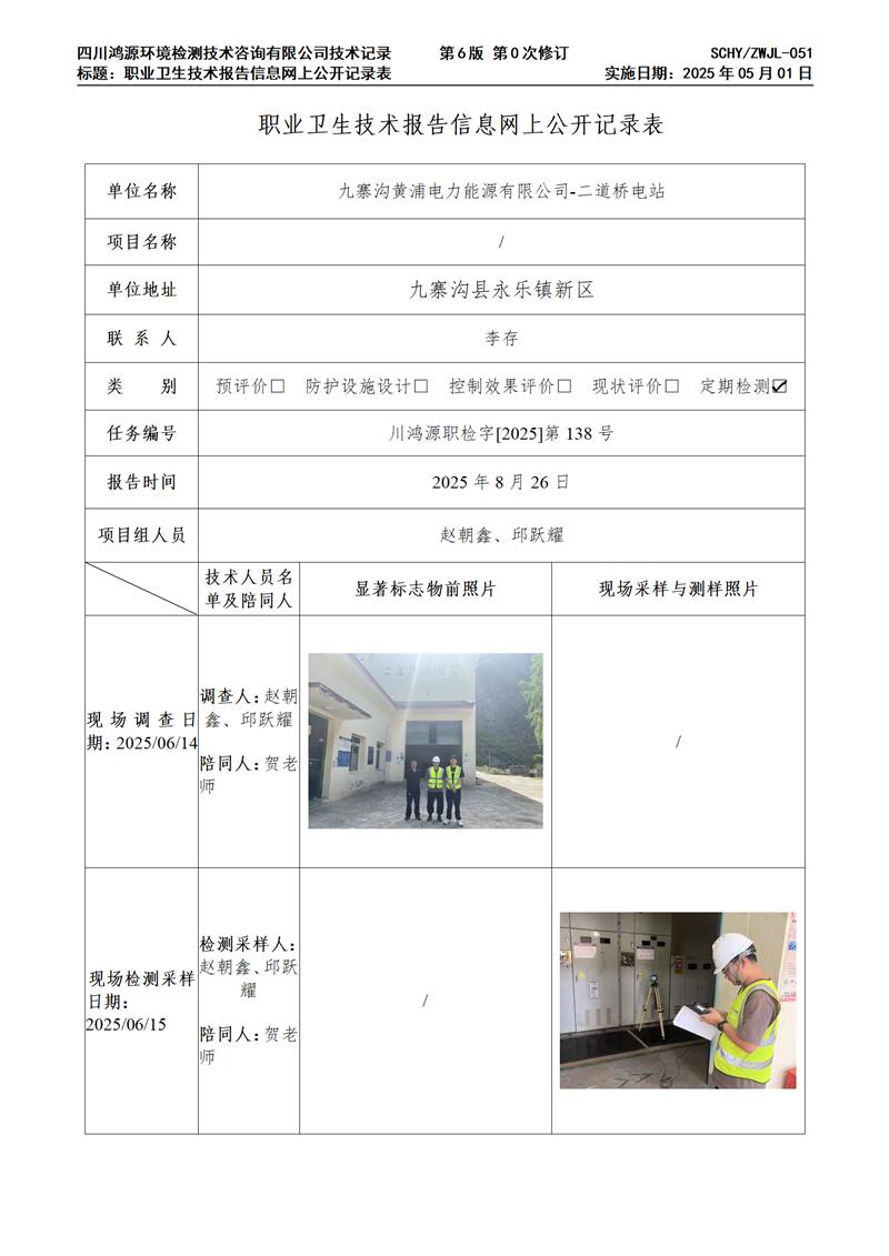 九寨沟黄浦电力能源有限公司-二道桥电站职业卫生技术服务项目网上公示单
