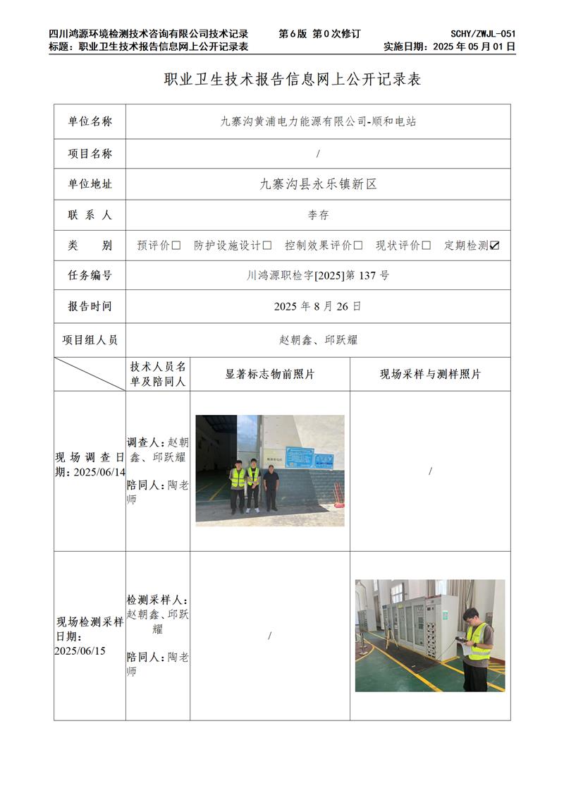 九寨沟黄浦电力能源有限公司-顺和电站职业卫生技术服务项目网上公示单