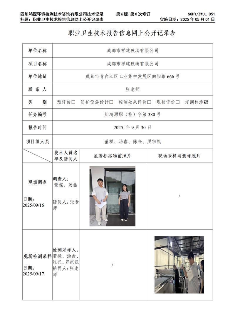 成都市祥建玻璃有限公司职业卫生技术服务项目网上公示单