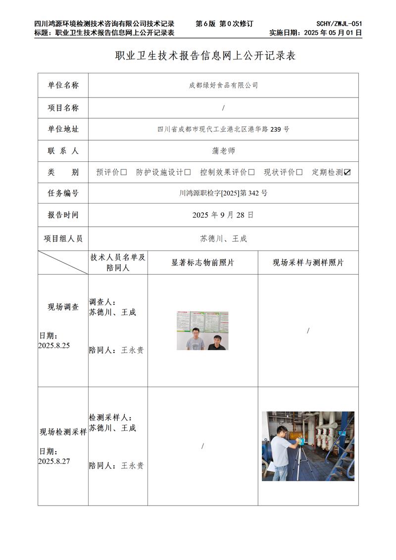 成都绿好食品有限公司职业卫生技术服务项目网上公示单
