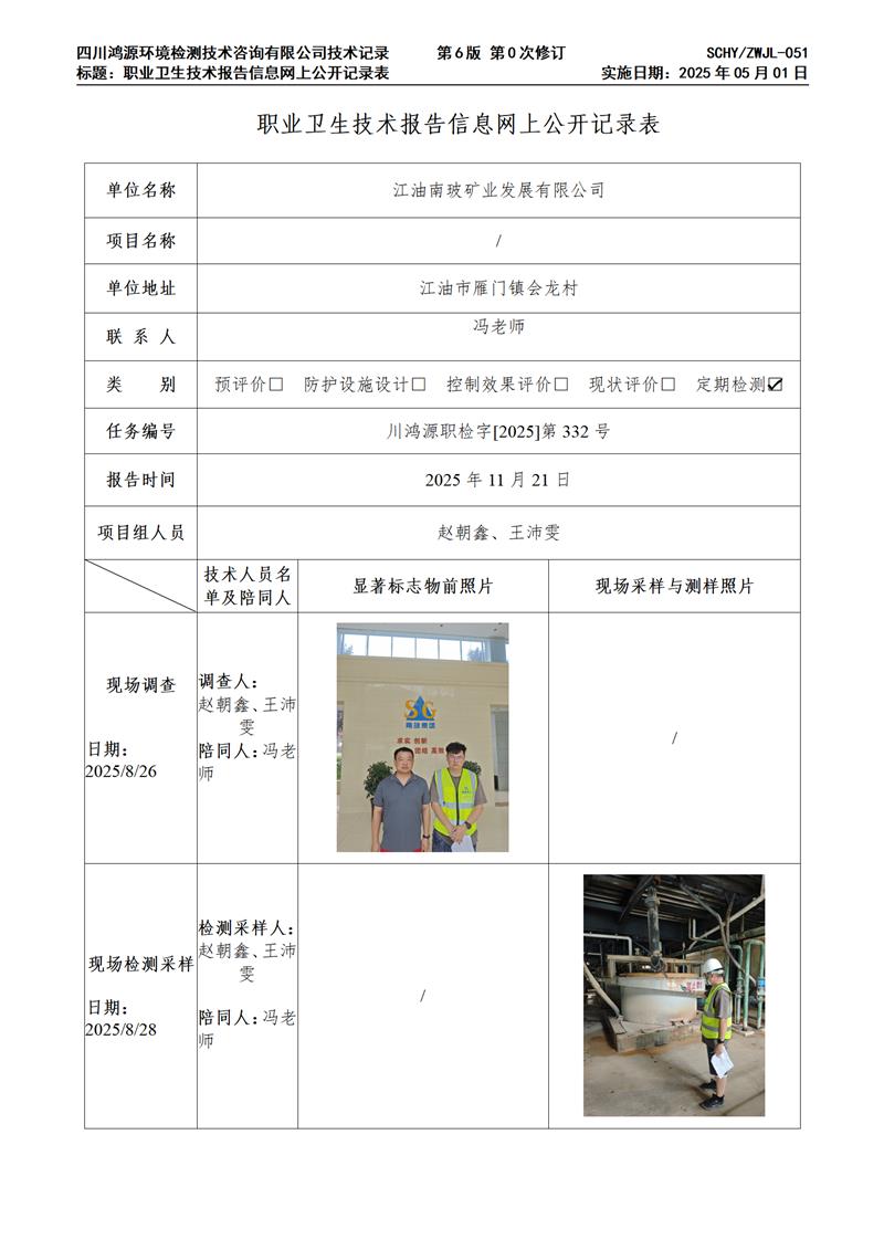 江油南玻矿业发展有限公司职业卫生技术服务网上公示单
