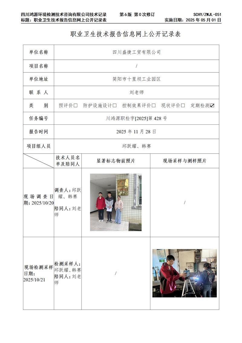 四川盛捷工贸有限公司职业卫生技术服务项目网上公示单
