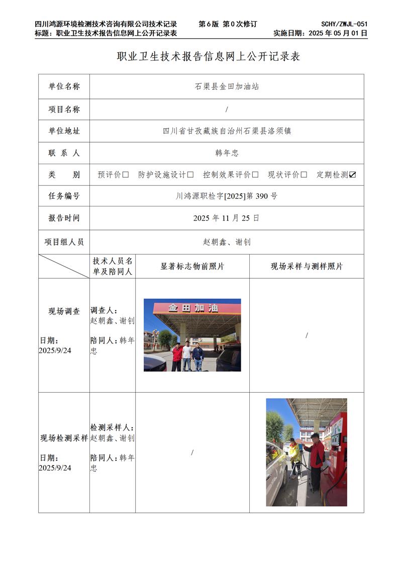 石渠县金田加油站职业卫生技术服务项目网上公示单