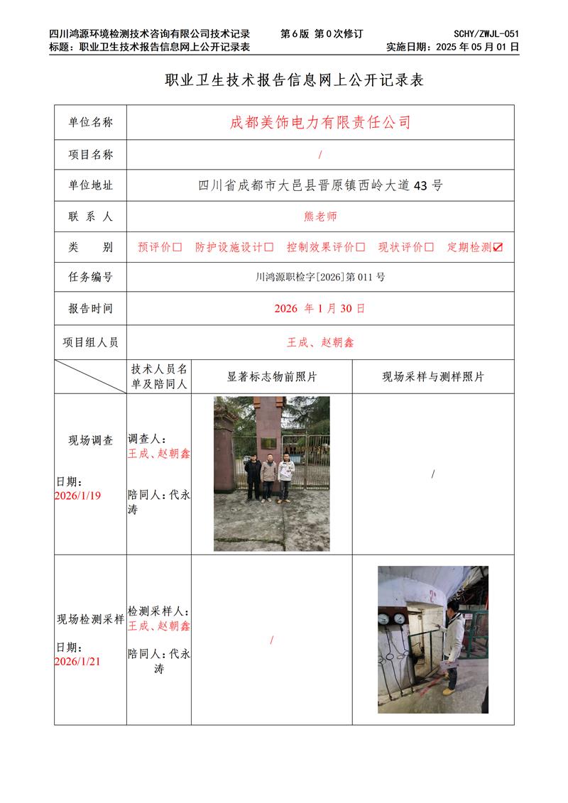 成都美饰电力有限责任公司职业卫生技术服务项目网上公示单