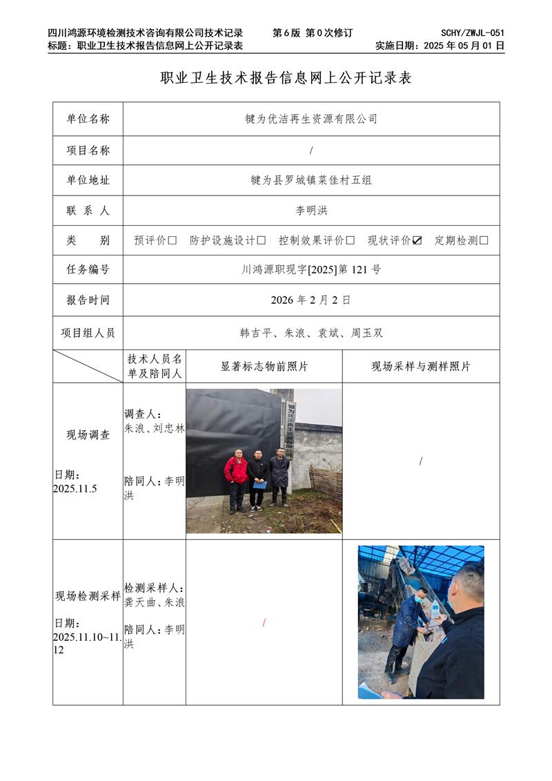 犍为优洁再生资源有限公司职业卫生技术服务项目网上公示单