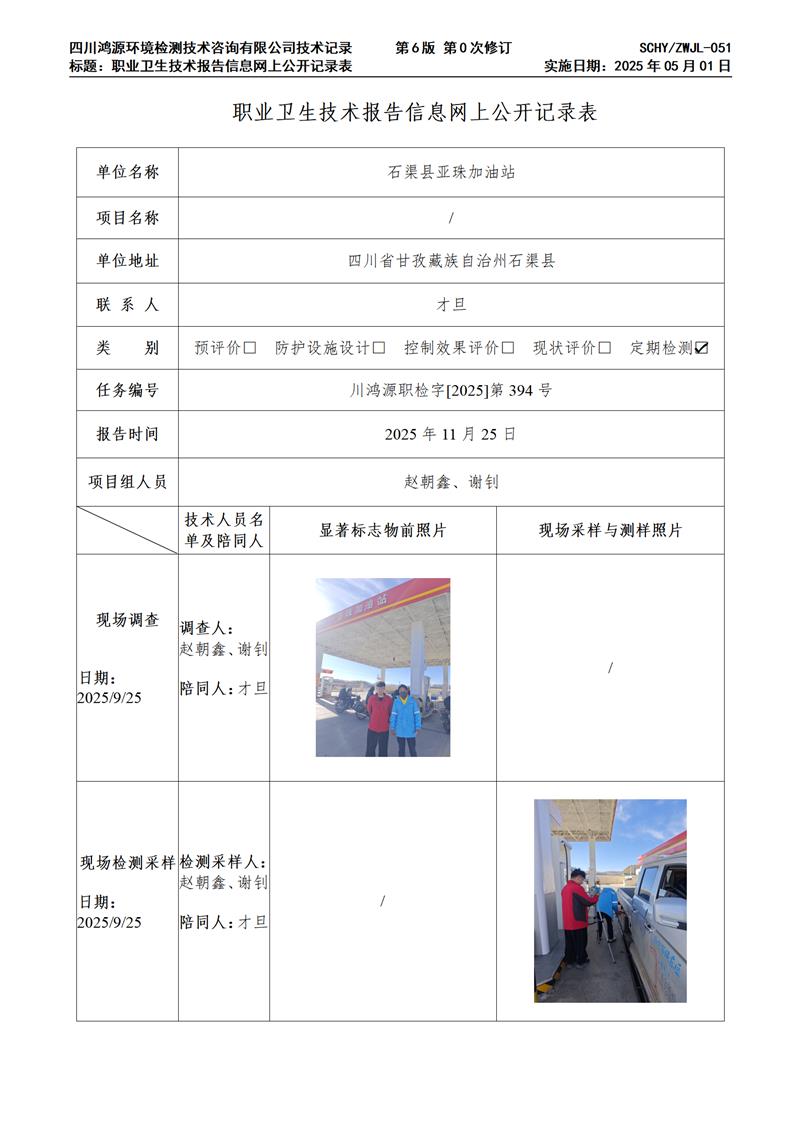 石渠县亚珠加油站职业卫生技术服务项目网上公示单